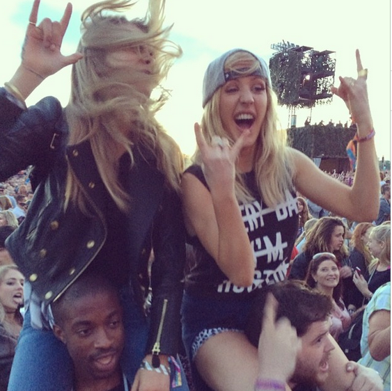 Delevingne hung out with London based musician Ellie Goulding who wore a graphic Tee emblazoned with the words “Everyday i’m hustling”, just proving yet again that London girls do it better (music festivals that is).